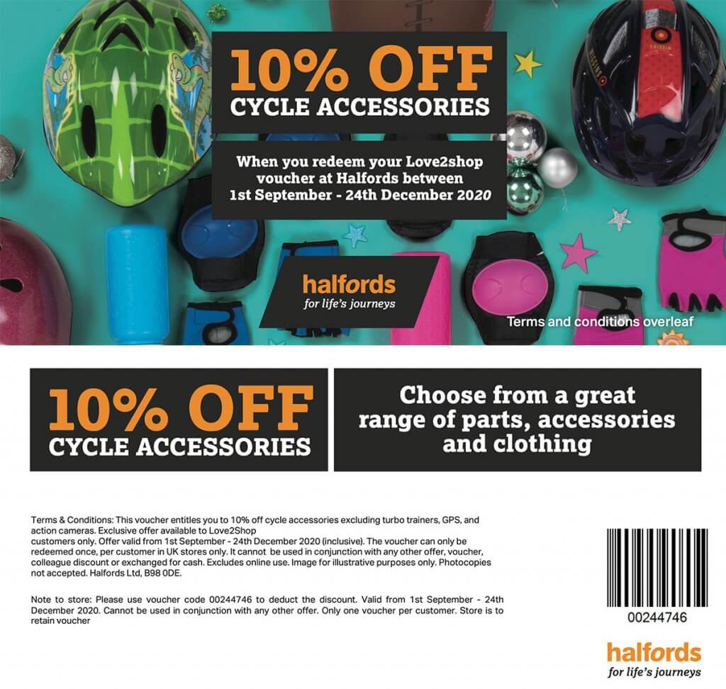 29th September 2020 1st October 2020 - Expires: 24th December 2020 Accessories, Cycling, Love2shop In-Store Offers