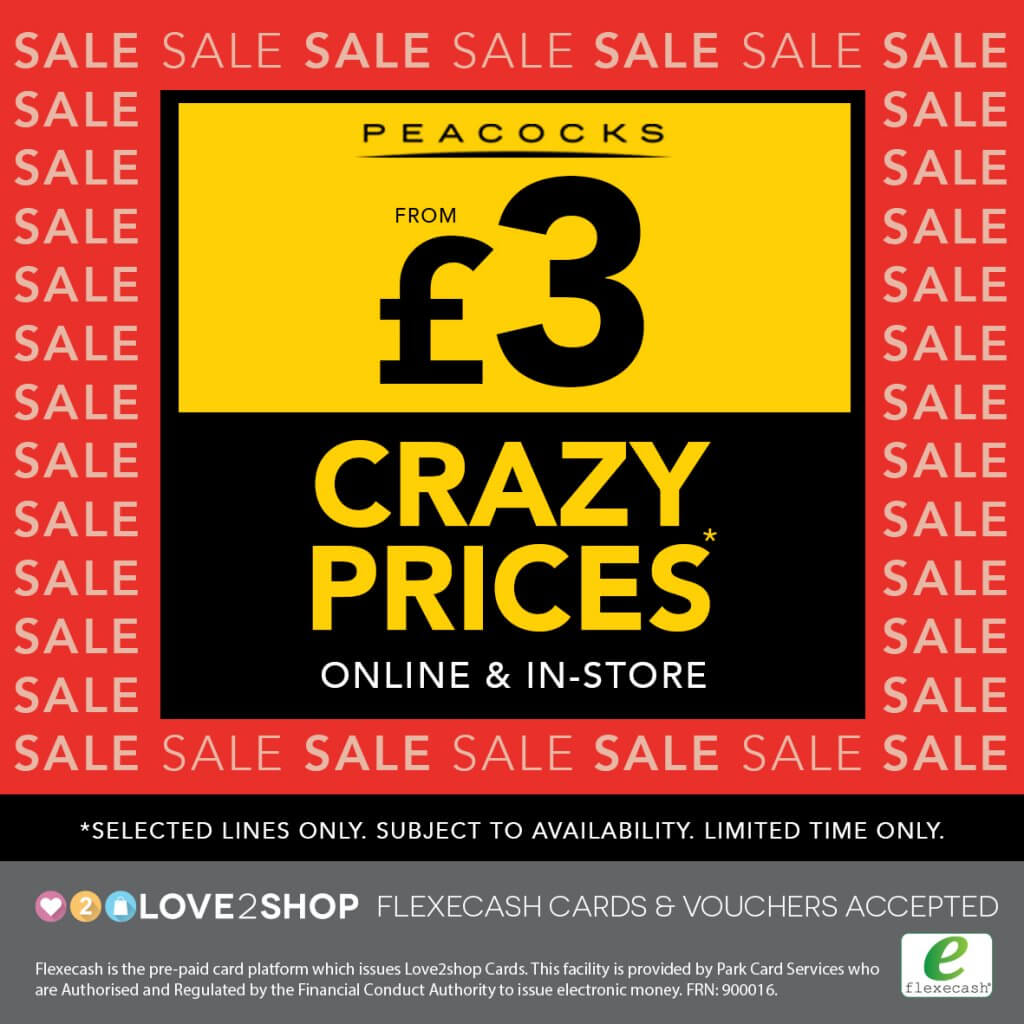 Shop the Peacocks sale now and get crazy prices. Selected items starting from only £3.00.*Selected lines only. Subject to availability. Limited time only.... more ››