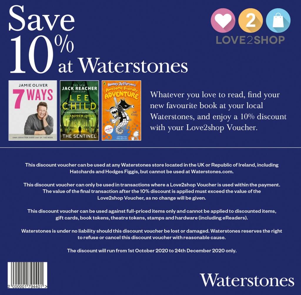 Save 10% at WaterstonesWhatever you love to read, find your new favourite book at your local Waterstones, and enjoy a 10% discount with your Love2shop vouchers and Love2shop card.... more ››
