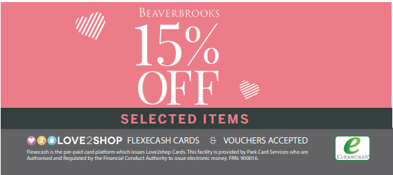Shop now and 15% off selected items at Beaverbrooks*Love2shop Flexecash Cards and Love2shop Vouchers accepted.... more ››